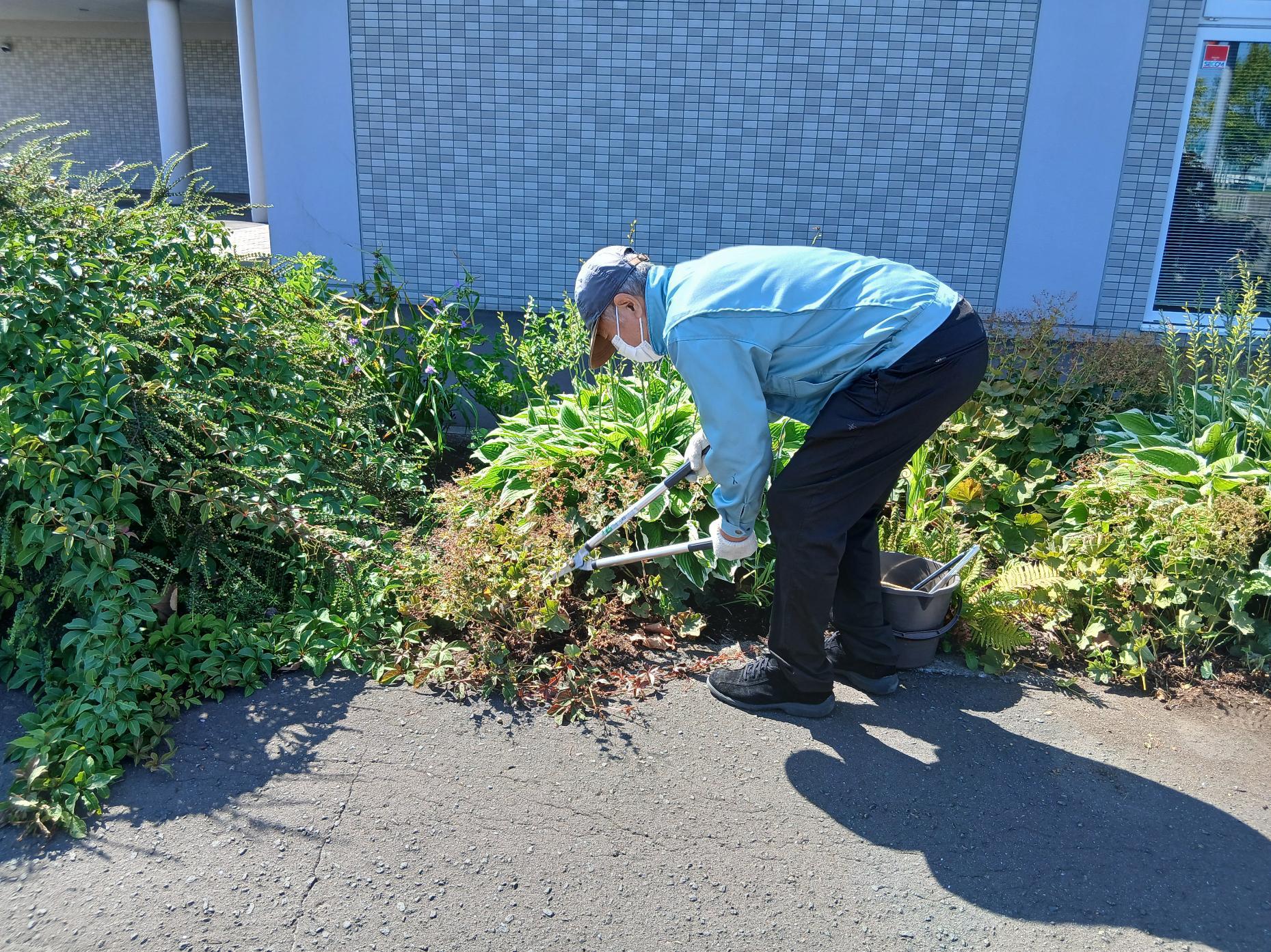 事務員の方が植物をカットしています✂️