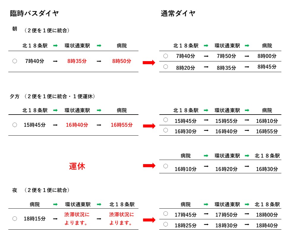 ※ 上記以外の時間帯についても原則通常ダイヤ通りにて運行致します。